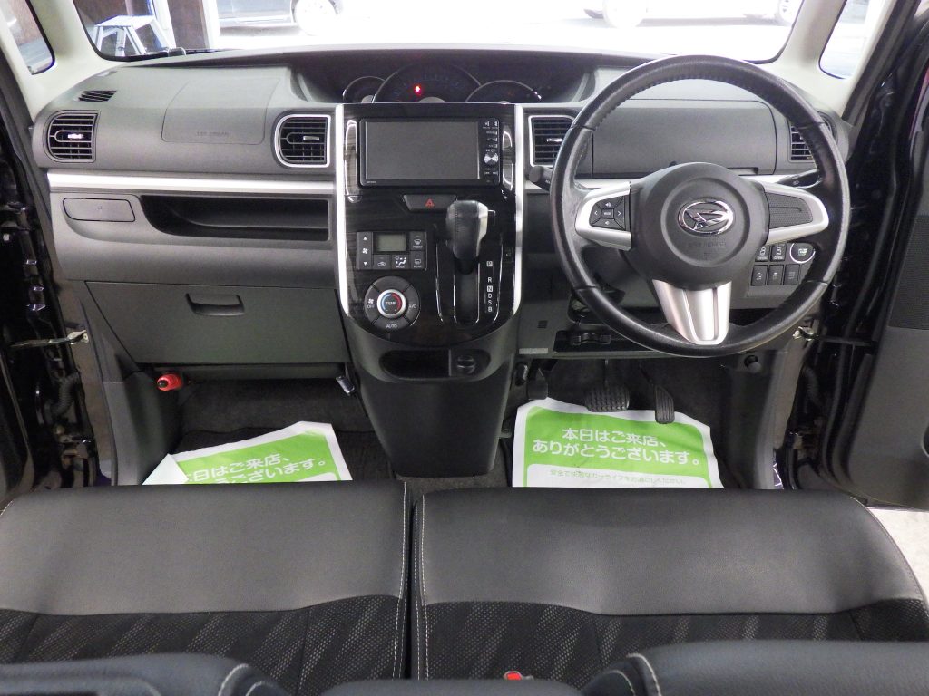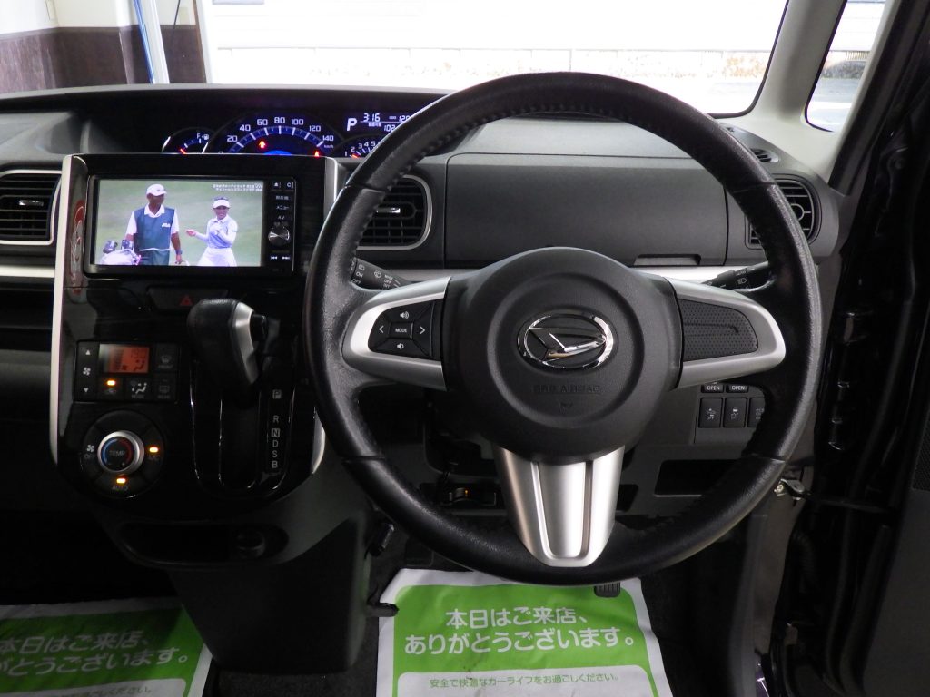 スマートアシスト!純正SDナビフルセグ!DVD再生!Bluetooth接続!ハーフレザーシート!バックカメラ!両側パワースライドドア!ETC!横滑り防止装置!トラクションコントロール!アイドリングストップ!純正15インチアルミホイール!インタークーラーターボ!LEDヘッドライト!ハロゲンフォグランプ!内外装美車!最上級グレード!オプション多数!