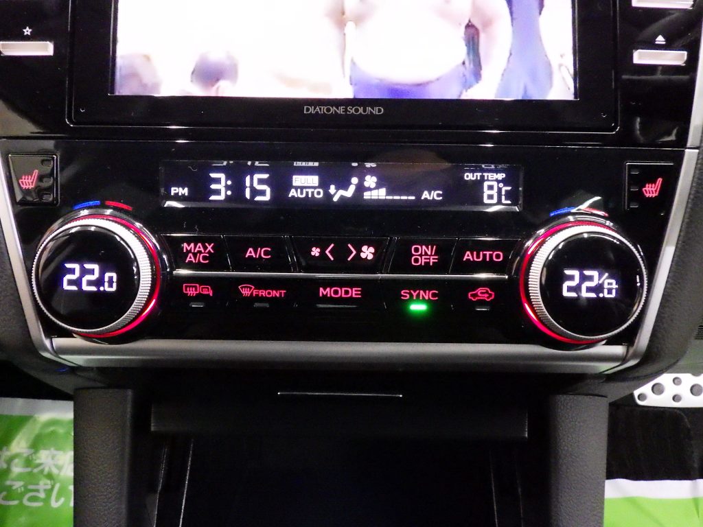 アイサイト!ダイアトーン8インチナビフルセグ!DVD再生!Bluetooth接続!フロント&左サイド&バックカメラ!ETC!レーダークルーズコントロール!パドルシフト!フロント左右シートヒーター!ミラーヒーター!SIドライブ!ブラインドスポットモニター!アイドリングストップ!ハーフレザーシート!純正フロアマット!スマートキー2個!LEDヘッドライト!LEDフォグランプ!純正18インチアルミホイール!ワンオーナー!禁煙車!内外装美車!