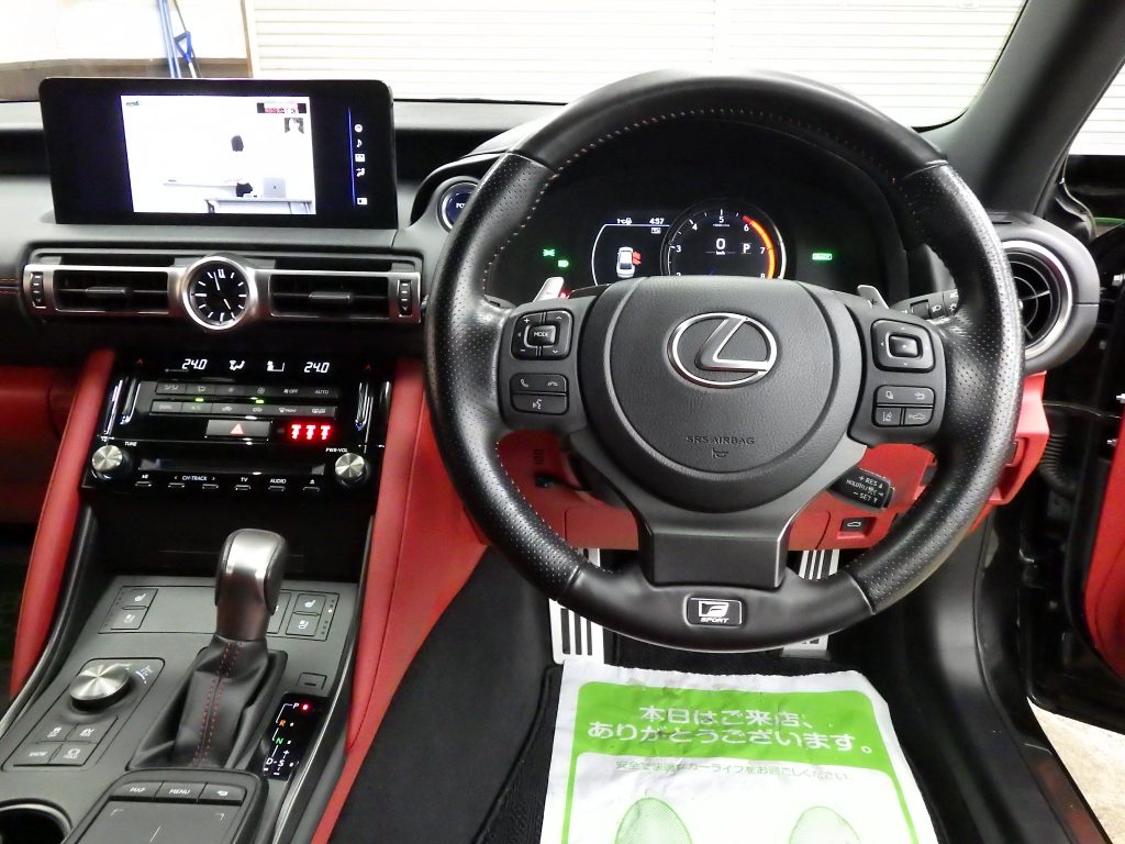 レクサスセーフティシステム!純正ナビフルセグ!DVD再生!Bluetooth接続!テレビキャンセラー!パノラミックビューモニター!Fスポーツ専用赤革シート!ビルトインETC2.0!ブラインドスポットモニター!レーダークルーズコントロール!フロント左右パワーシート&シートヒーター&ベンチレーター!ステアリングヒーター!前後ドライブレコーダー!スマートキー2個!スマートキー一体純正エンジンスターター!オレンジキャリパー!パドルシフト!純正フロアマット!LEDヘッドライト!夏タイヤ純正19インチアルミホイールセット!スタッドレスタイヤ純正19インチアルミホイールセット付属2023年製YOKOHAMA iG70!寒冷地仕様!禁煙車!内外装美車!